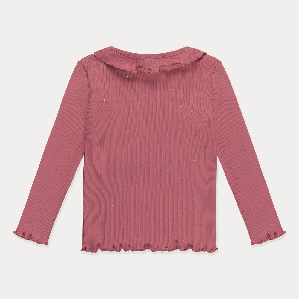 Toddler Girls Top Long Sleeve Shirt Lettuce Neck, Cotton Ribbed, Pink